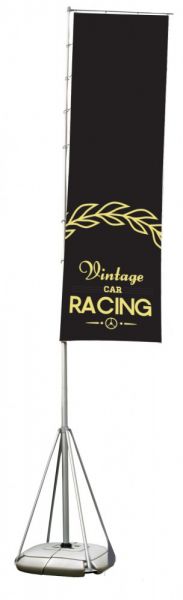 For high impact promotions, the Wind Dancer portable flag is the ideal solution. The telescopic pole extends to over 5m high, so you can be sure to get your message across. The base unit splits down into sections for easy carriage, each section can be filled with water or sand for extra stability.